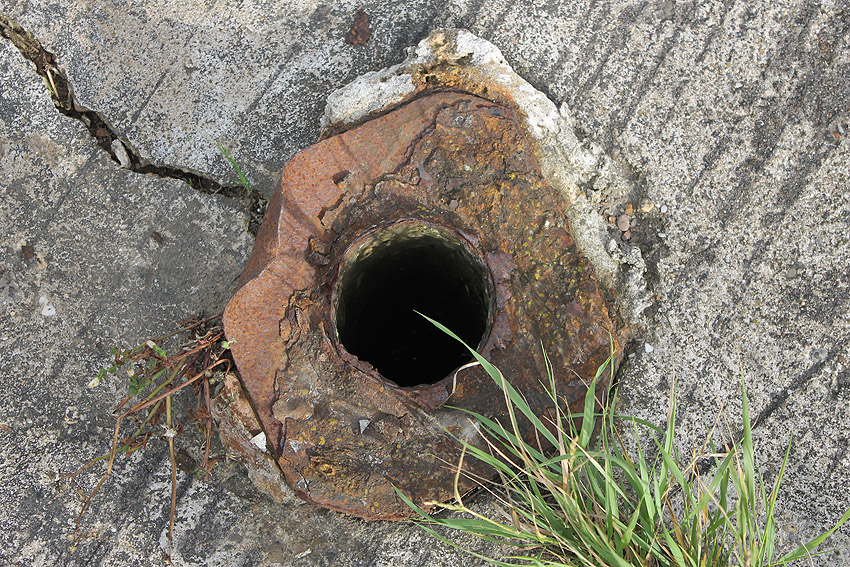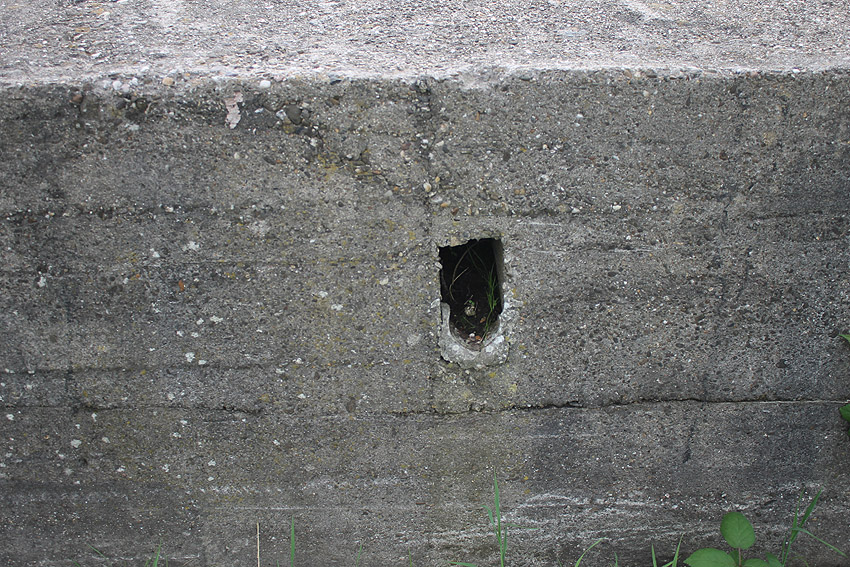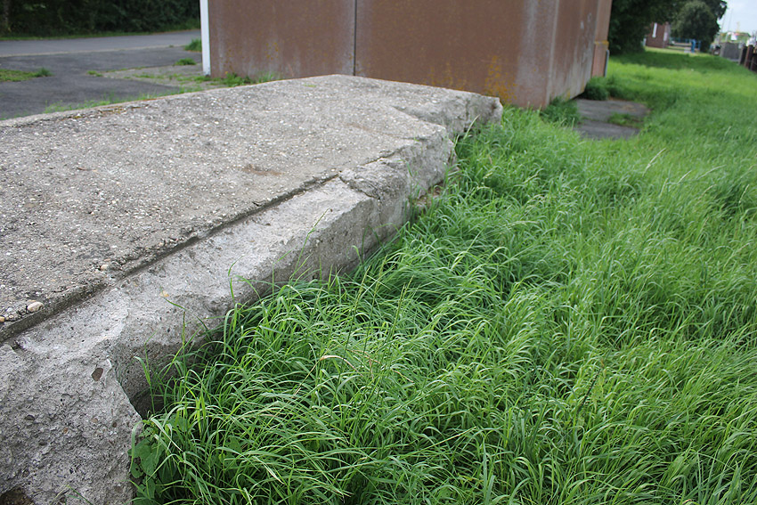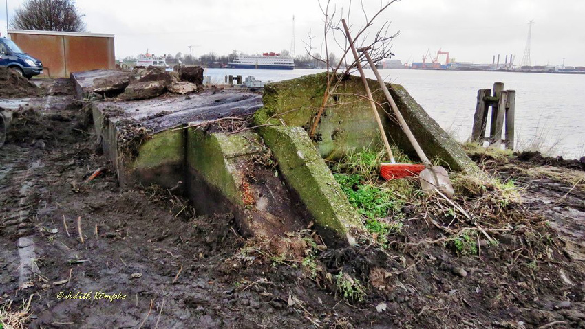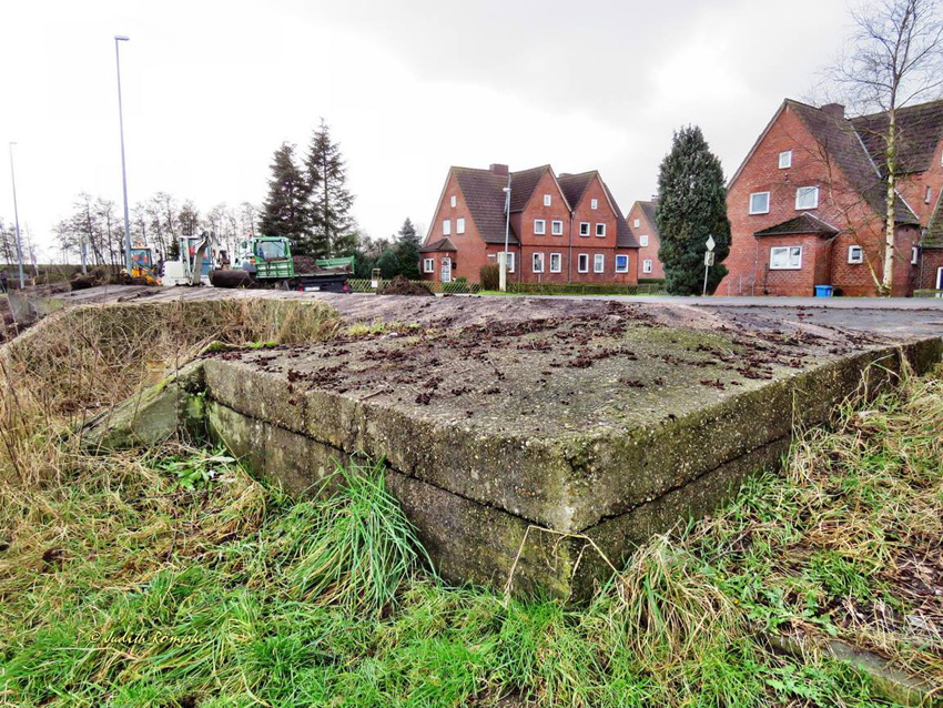 27.01.15: Der betonierte Deckungsgraben südlich der Seeschleuse an der Willi-Zander-Straße wurde nun freigelegt. "Optische Gründe" ("wild wachsendes Buschwerk") sollen der Auslöser dafür gewesen sein. Diesbezüglich wird aufgrund einer notwendigen Zuwegung für die Befahrung mit Pflegemaschinen der Eingangssplitterschutz an der Nordostseite des Deckungsgrabens entfernt. Wir danken Frau J. Römpke für die Informationen und für das Bildmaterial! Wir berichten weiter.