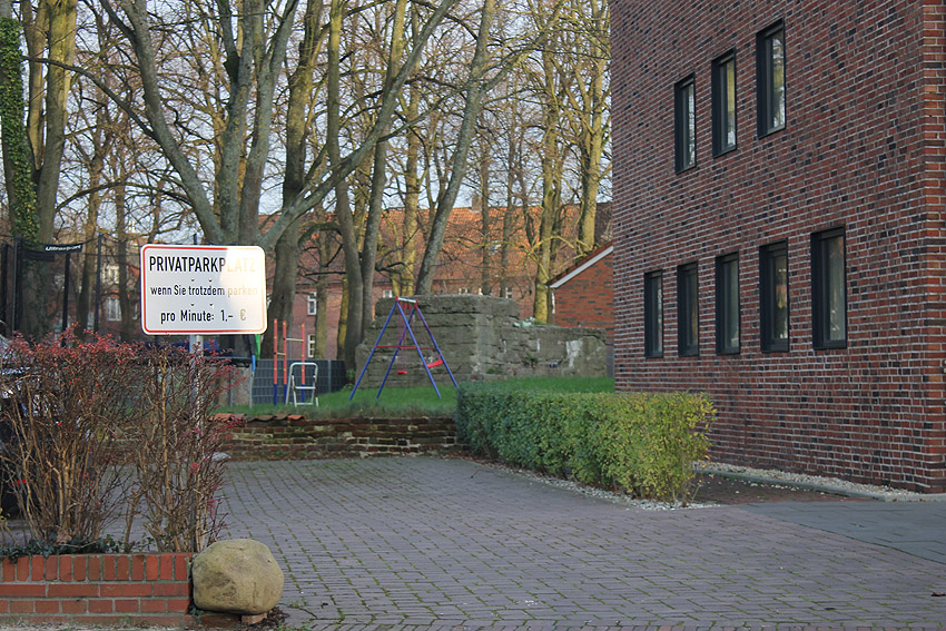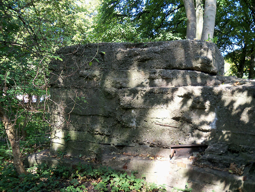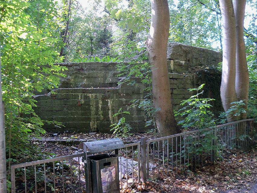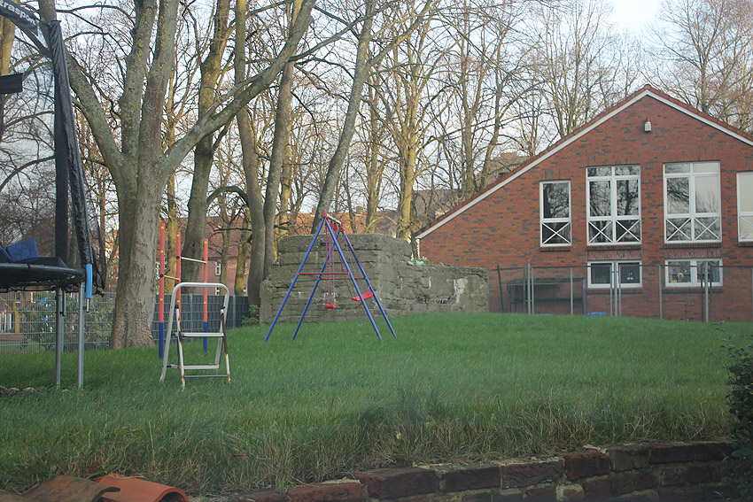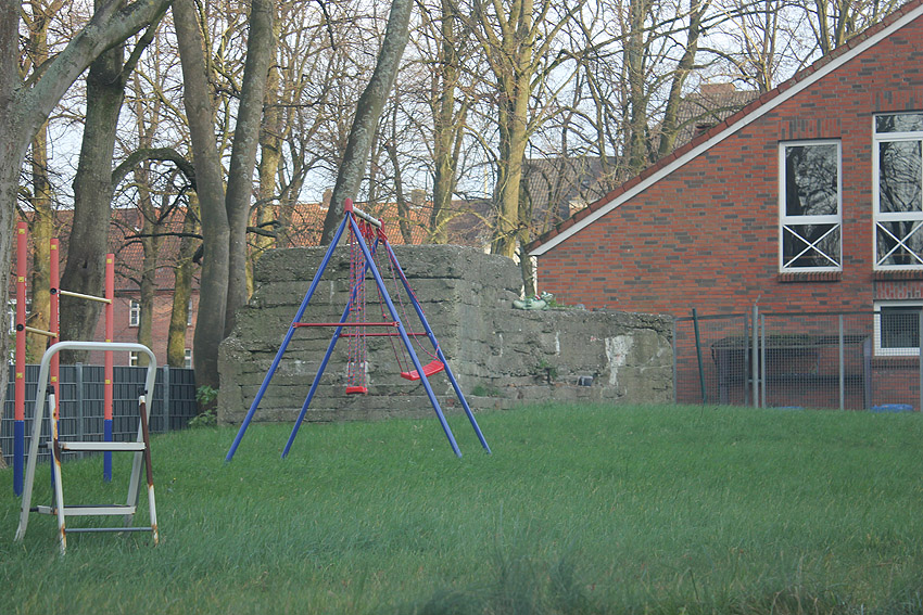 31.07.15: Der Bunker wurde inzwischen "freigelegt". Sämtliches Strauchwerk umzu wurde entfernt. Das Objekt ist nun gut einsehbar. Rasen wurde angelegt. Die Maßnahme diente wohl zur Aufwertung des Geländes.