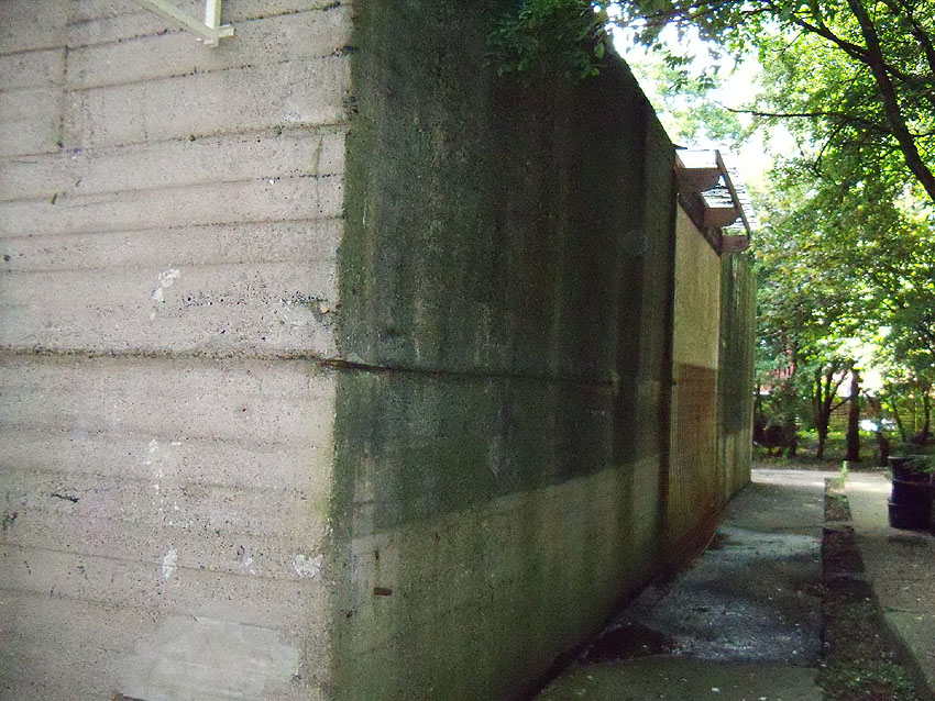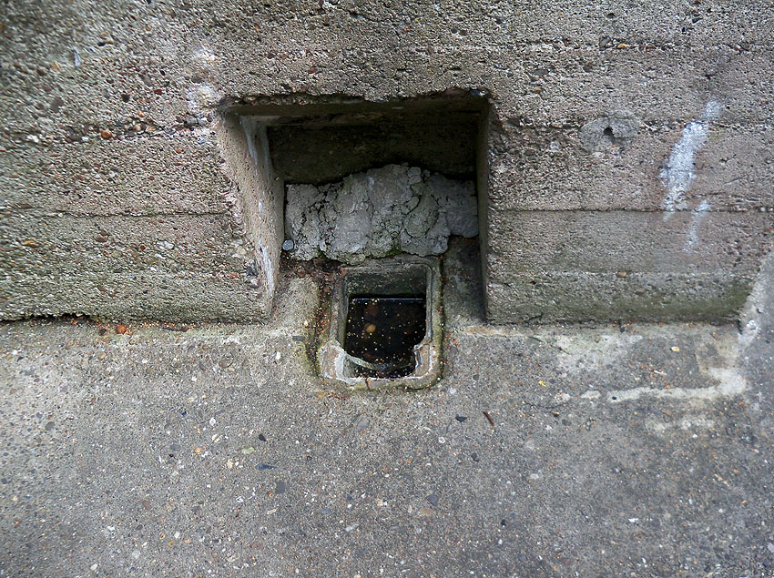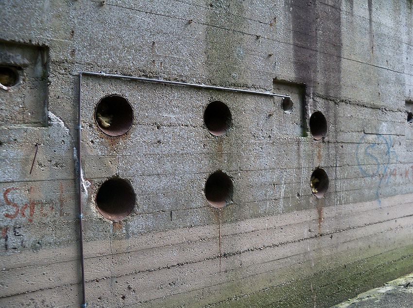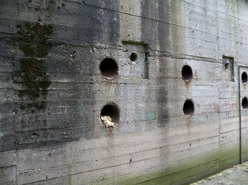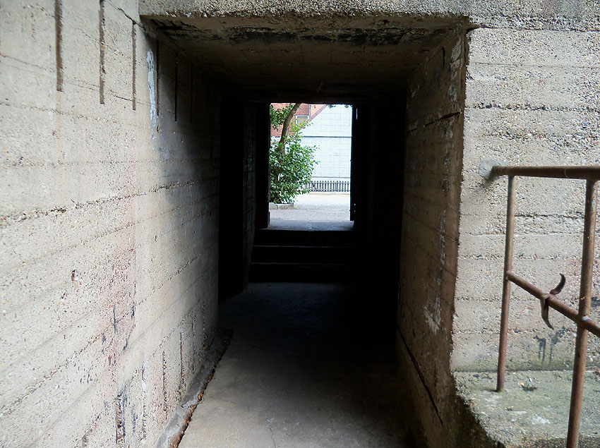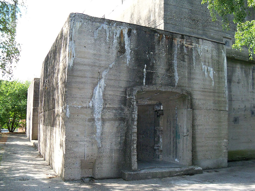 Der Bunker wurde an der vorderen Süd- und rückwärtigen Nordseite jeweils mit einer Notausgangstür entfestigt.