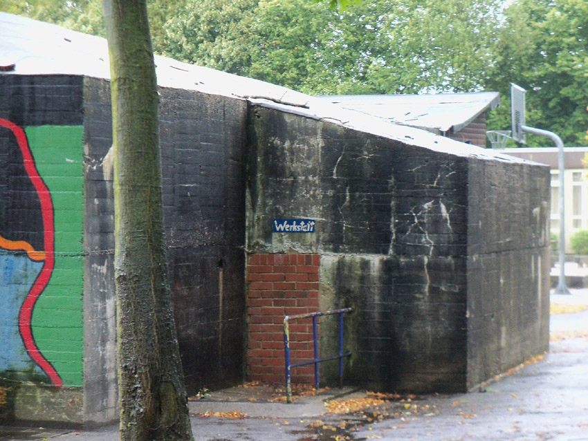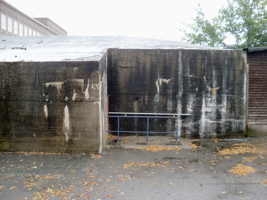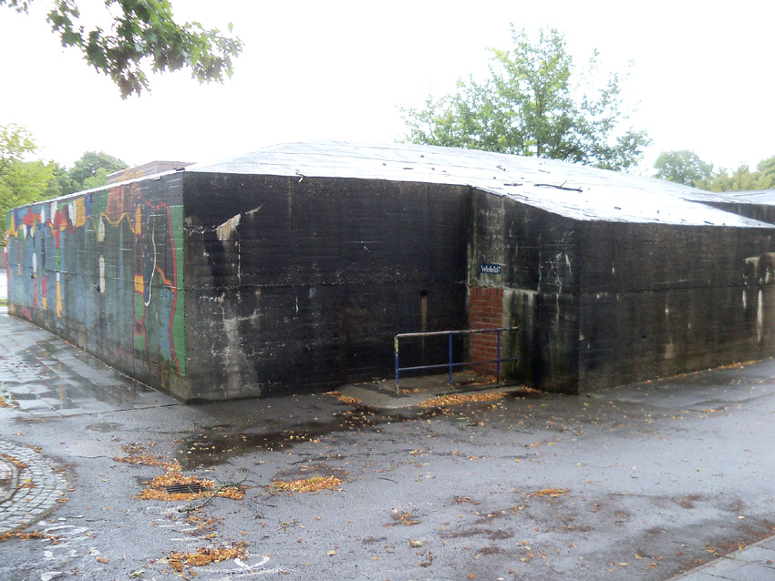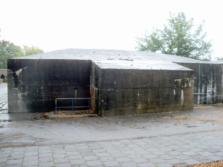 Dieser flache, eingeschossige Hochbunker zeigt durchaus Ähnlichkeiten zum Bunker an der Hegelstraße (Drahtnachrichtenkompanie) in Wilhelmshaven auf. Er hat jedoch bereits auf den ersten Blick breitere Splitterschutzvorbauten und ist größer. Das Wilhelmshavener Exemplar, welches zudem nur einen Vorbau besaß, wurde nach dem Krieg gesprengt und später entfernt: