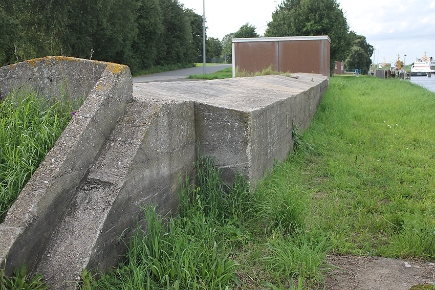 27.01.15: Der betonierte Deckungsgraben südlich der Seeschleuse an der Willi-Zander-Straße wurde nun freigelegt. "Optische Gründe" ("wild wachsendes Buschwerk") sollen der Auslöser dafür gewesen sein. Diesbezüglich wird aufgrund einer notwendigen Zuwegung für die Befahrung mit Pflegemaschinen der Eingangssplitterschutz an der Nordostseite des Deckungsgrabens entfernt. Wir danken Frau J. Römpke für die Informationen und für das Bildmaterial! Wir berichten weiter.