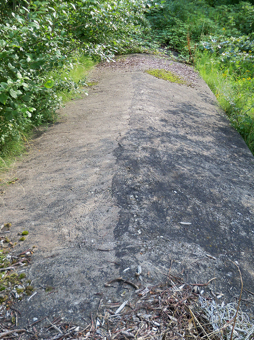 Unweit nordwestlich befindet sich eine Bauschuttfläche, auf der im Juli 2017 verdächtige Trümmer abgelagert waren. Sind dies Verbunkungsreste aus Kriegszeiten?