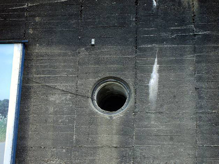 In diesem Emder T 750 war im Krieg unter anderem eine Küstenüberwachungsstelle untergebracht, daher ist das Innere des Bunkers in einigen Bereichen anders als regulär aufgebaut (siehe Risse).