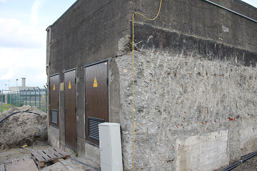Zur Zeit der Fotoaufnahmen wurde der Trafobunker saniert. Deshalb erfolgte wohl auch der Abriss der anliegenden Betonstrukturen.