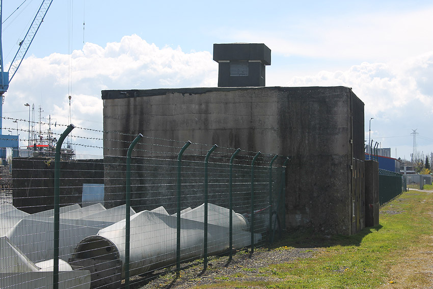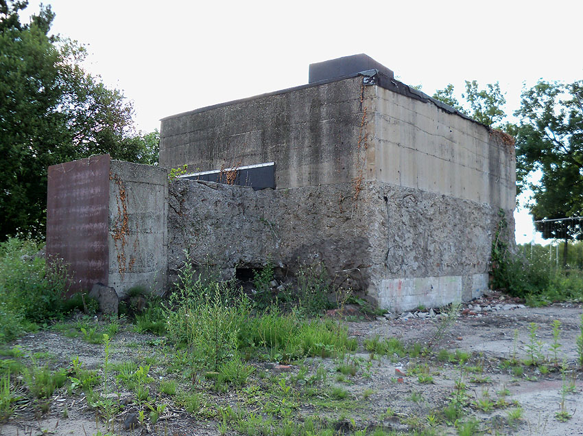 Es besteht der Verdacht, dass ursprünglich an diesem Trafobunker ein weiterer "Zickzackbunker" angebaut war. Noch immer sind Reste einer massiven LS-Anlage (man beachte die Stärke der ehemaligen Decke) zu erkennen, die um den Trafobunker herum angelegt war...