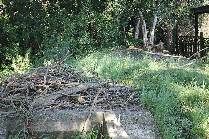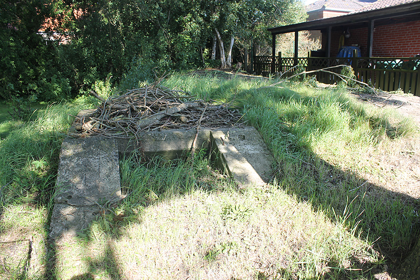 Diese Anlage besitzt noch einen zweiten, nicht einsehbaren Eingang einige Meter östlich des abgebildeten West-Hauptzuganges. Der Schutzbau ist etwa 20 Meter lang. Der zweite Eingang scheint, aus der Luft mit den gängigen Programmen gesehen, ein offener Abgang mit Stufen zu sein. Ob dort ursprünglich ein Schutzbauwerk befindlich war, ist unklar.